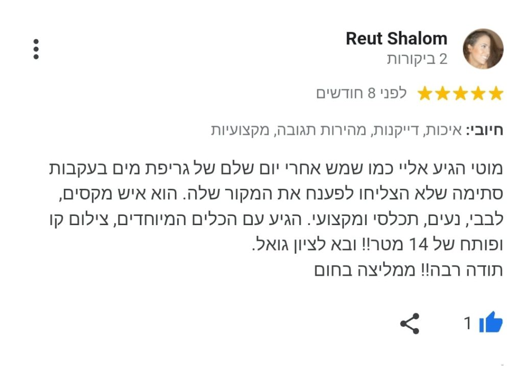 עם מאות לקוחות מרוצים ויבשים אני יכול בפה מלא להגיד שאין נזילה שלא פגשתי. מנזילות הקטנות והסמויות ביותר בבתים פרטיים ועד לנזילות שקשות לאיתור לאורך צנרת האינסטלציה.